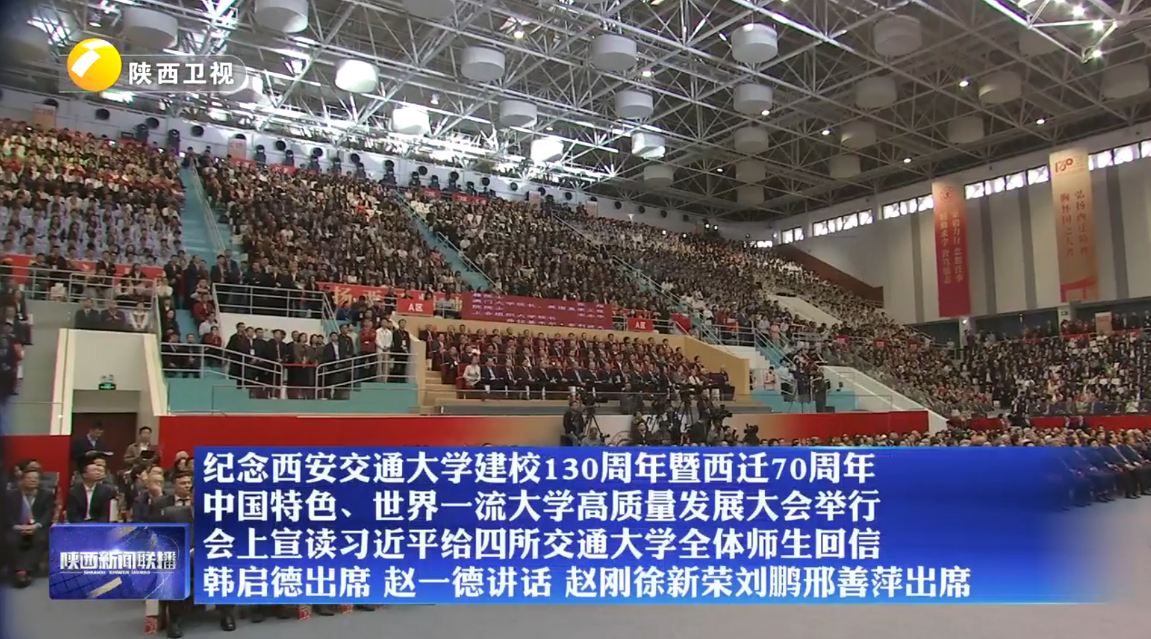 【在习近平新时代中国特色社会主义思想指引下】纪念西安交通大学建校130周年暨西迁70周年 中国特色、世界一流大学高质量发展大会举行 会上宣读习近平给四所交通大学全体师生回信 韩启德出席 赵一德讲话 赵刚徐新荣刘鹏邢善萍出席